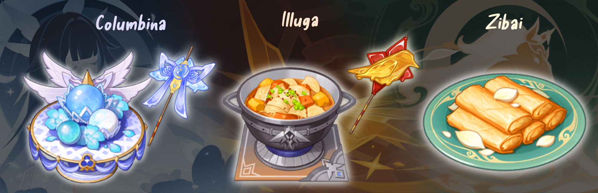 Leaked assets from Genshin Impact Version 6.3 have revealed a suite of new cosmetic and flavor content for three spotlighted characters, with Columbina, Zibai, and Illuga each receiving a full thematic package. The leak includes special dishes, namecards, outfit descriptions, and decorative sugar sculptures, all rich with worldbuilding cues. These items do more than change appearance. They expand each character’s cultural background, their narrative tone, and the festival related content players will experience during Lantern Rite and associated events.