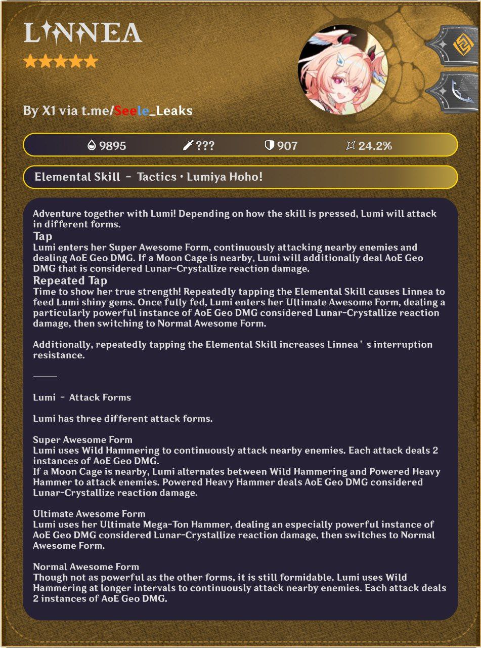A major Genshin Impact 6.5 leak has revealed the full kit of Linnea, confirming her as a complex DEF scaling support and reaction enabler with three distinct combat forms. The leaked beta sheet provides complete descriptions of her Elemental Skill, Elemental Burst, Ascension Talents, Passive Talents, and Constellations, alongside detailed explanations of her Lunar Crystallize mechanics and Moon Cage interactions.