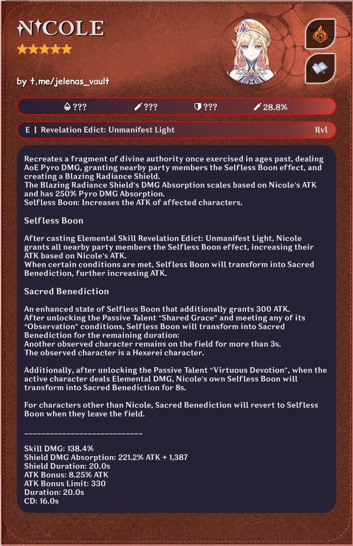 • Buff increases 70% of Nicole’s ATK.
