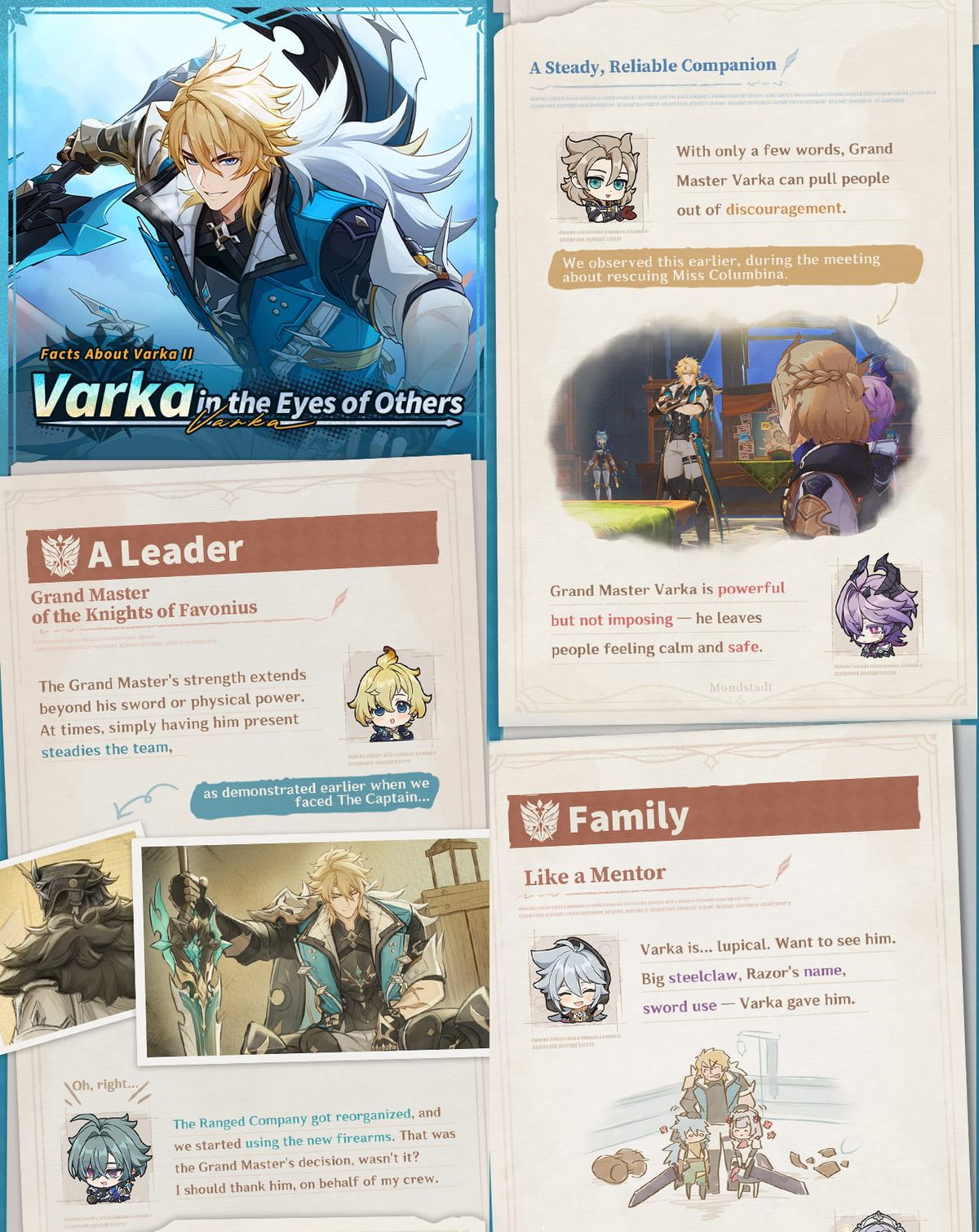 Genshin Impact continues expanding Mondstadt’s lore with the publication of “Facts About Varka II | Varka in the Eyes of Others.” Serving as a follow up to the first installment, this new entry deepens the portrait of Varka, Grand Master of the Knights of Favonius, by shifting focus toward how he is perceived by those around him.