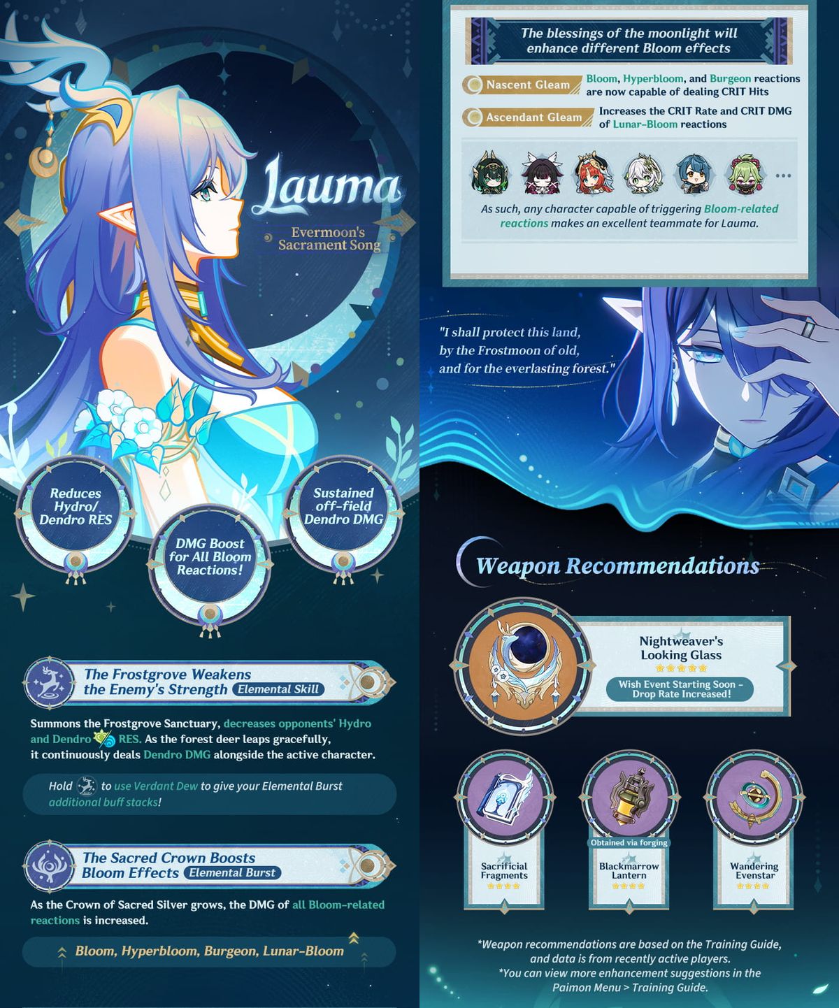 The “Moonsong of the Groves” banner will officially introduce Lauma as an event-exclusive character, meaning she will not be added to the standard banner pool. This limited availability increases her value, especially for players looking to invest in future proof Dendro strategies and synergy focused gameplay.