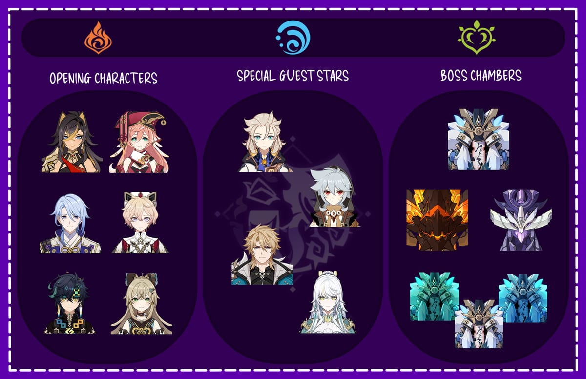 Esta combinación favorece en gran medida a los equipos de Florecimiento (Bloom), Quemadura (Burgeon) y Vaporización (Vaporize). Los jugadores que dependan de núcleos Electro, Geo o Cryo podrían necesitar ajustar sus builds para maximizar la eficiencia bajo estas restricciones.