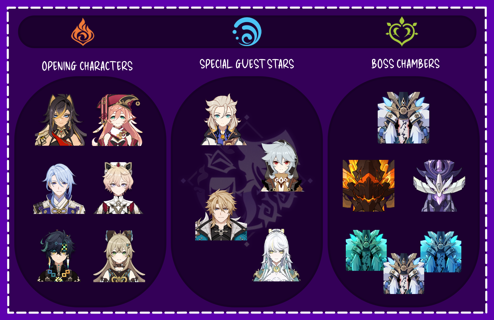Nuevas filtraciones de Genshin Impact 6.5 han revelado todos los detalles de la próxima rotación del Teatro Imaginario, incluyendo los elementos permitidos, personajes iniciales, invitados especiales y alineaciones de cámaras de jefes. Según los datos beta extraídos de la Versión 6.5 de Genshin Impact, este ciclo enfatizará las composiciones Pyro, Hydro y Dendro, impulsando la creación de equipos basados en reacciones.