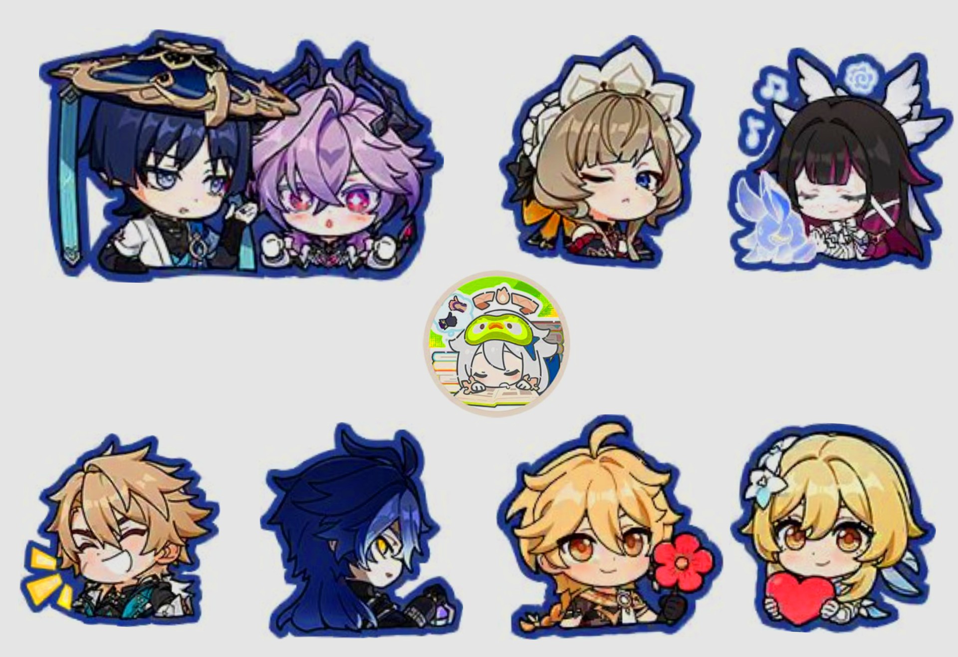 Un tercer emparejamiento de pegatinas se centra en Varka y Flins. Varka finalmente está acaparando la atención como un Claymore Anemo de 5 estrellas y un miembro clave de la estructura de resonancia del Hexenzirkel en la Versión 6.4. Flins ha estado circulando en las discusiones de la comunidad como parte del lore extendido, y colocar a estos dos en un set de pegatinas uno al lado del otro refuerza la idea de que pertenecen al mismo grupo narrativo más amplio. Para los fans de Mondstadt en particular, las pegatinas de Varka & Flins se sentirán como un adelanto del tan esperado regreso del contenido centrado en Mondstadt, especialmente con el Puerto Dornman en el horizonte.