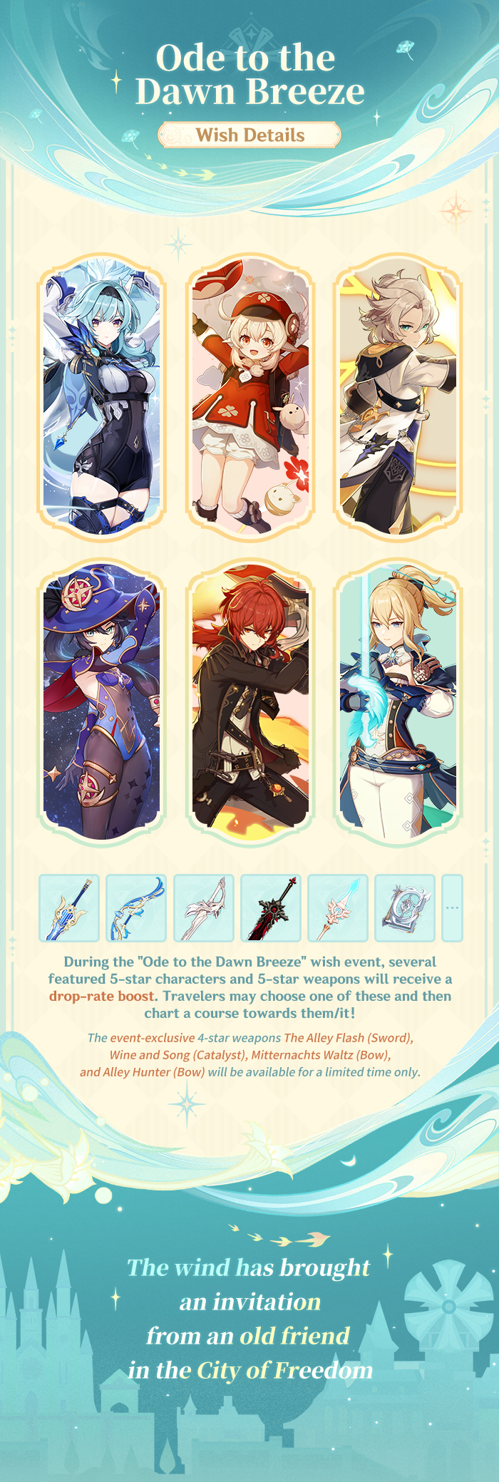 El sistema de Gachapón recopilatorio se diferencia de los gachapones de evento estándar al agrupar personajes de cinco estrellas y armas insignia lanzados anteriormente bajo una alineación temática. «Oda a la brisa del alba» sigue este formato, centrándose en unidades relacionadas con el viento y Mondstadt, creando una estética y dirección de juego coherentes para el evento. Para los jugadores que se hayan perdido sus relanzamientos anteriores, este gachapón presenta una valiosa segunda oportunidad para obtener poderosos personajes limitados.