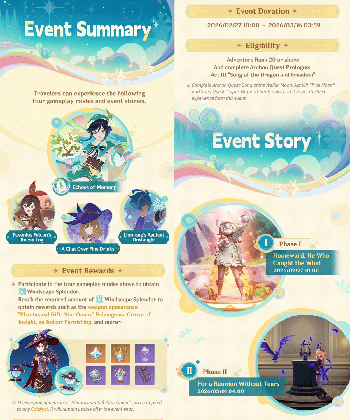 Según los detalles compartidos por HoYoverse, el evento se centra en una narrativa con la temática de los vientos de la libertad y un regreso muy esperado, insinuando una historia emotiva y momentos centrados en los personajes. Al igual que en eventos insignia anteriores, los jugadores pueden esperar una línea de misiones estructurada combinada con desafíos específicos del evento que recompensan la participación y el progreso.