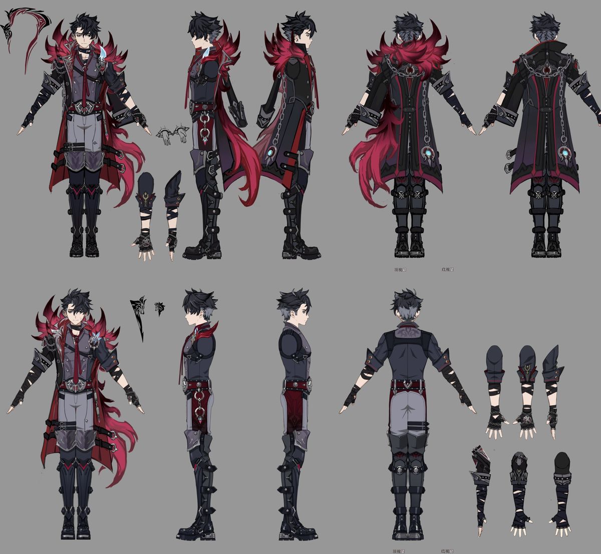 Uno de los aspectos más llamativos de los artes conceptuales es el enfoque en la elegancia práctica. El atuendo de Wriothesley está diseñado para reflejar su papel como gobernante y ejecutor dentro del sistema penitenciario del inframundo de Fontaine. Los conceptos exploran variaciones en la longitud del abrigo, el diseño de los guantes y la textura del material, enfatizando la durabilidad y la funcionalidad mientras se mantiene una estética refinada. Este equilibrio refuerza su imagen como un líder profundamente involucrado en las realidades de la Fortaleza en lugar de ser distante a ellas.