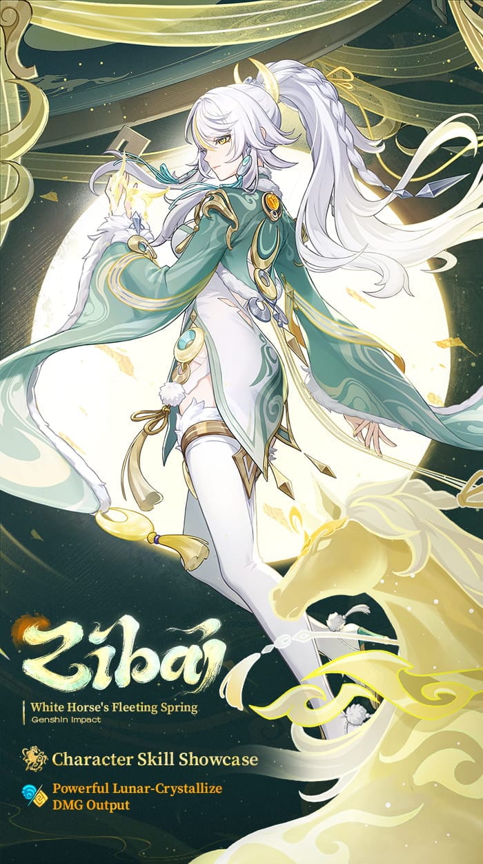 Como unidad Geo, Zibai demuestra sinergia con composiciones de equipo basadas en reacciones y centradas en estructuras. Su kit muestra interacciones que recompensan la sincronización y la atención, alineándose con el rol de Geo como un elemento centrado en la estabilidad y la ofensiva calculada. Los efectos de sus habilidades evocan momentos fugaces, reflejando el tema de la impermanencia que ha acompañado a Zibai a lo largo de sus presentaciones de historia y avances de personaje.