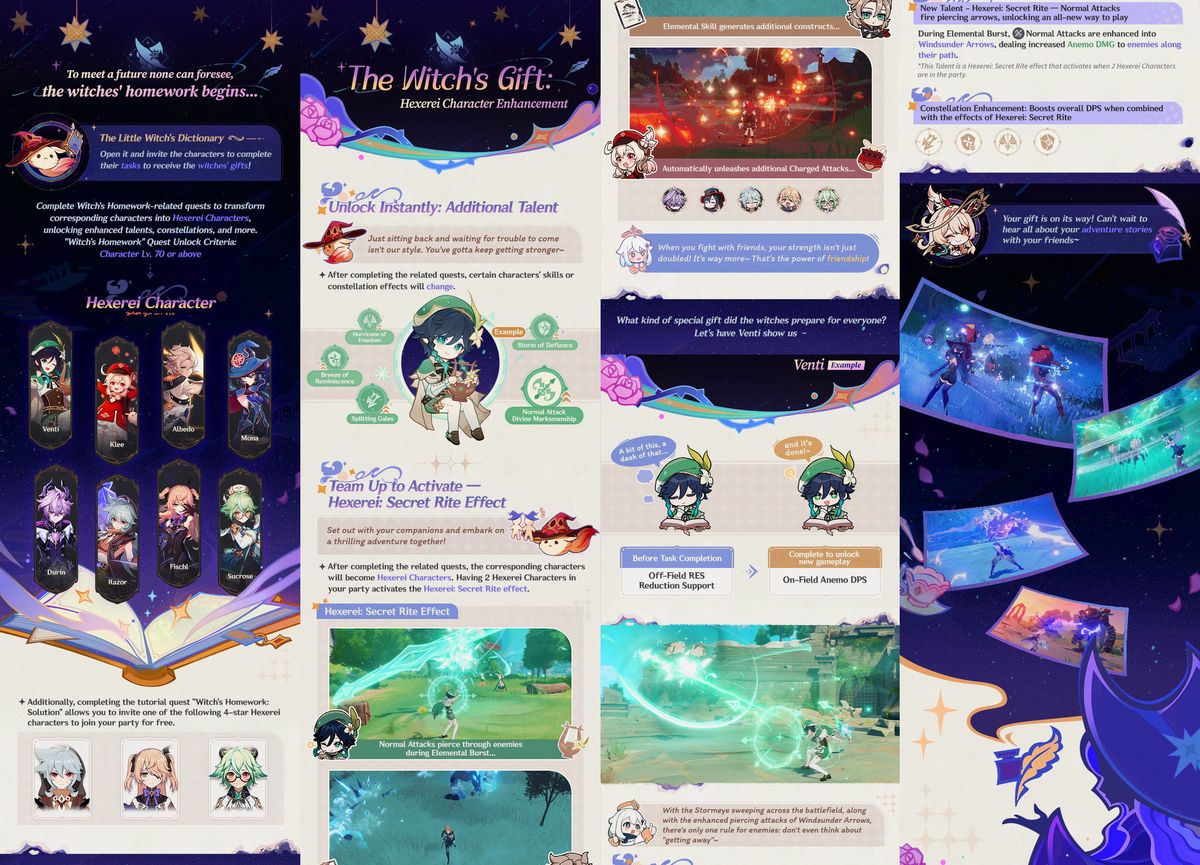 El escenario de La Tarea de la Bruja en la Biblioteca de Mondstadt también conecta directamente con personajes familiares como Lisa, Sacarosa y los Caballeros de Favonius. La idea de una tarea mágica curada por Alice abre la puerta a múltiples posibilidades para el diseño del evento. Los jugadores ya están especulando que esto podría ser una combinación de etapas de rompecabezas, pruebas de combate y tareas basadas en la historia que funcionan como lecciones o exámenes para el Viajero. Cada capítulo de “tarea” podría poner a prueba diferentes habilidades, desde reacciones elementales y construcción de equipos hasta exploración y conocimiento de la historia de Mondstadt.