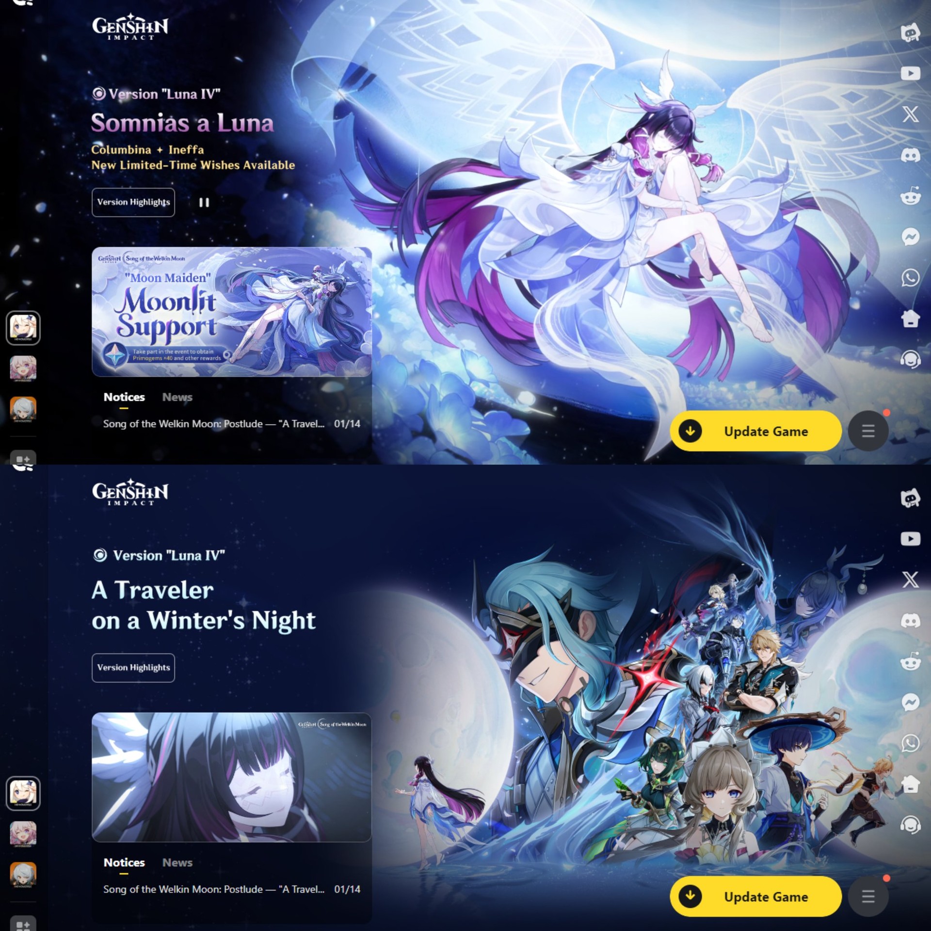 Con el lanzamiento de la versión 6.3, los jugadores que inician sesión en el juego son recibidos con visuales de lanzador renovados, diseñados para coincidir con el tono y los temas de la actualización actual. Entre ellos, la animación del lanzador de Columbina destaca por su elegante presentación, sutiles efectos de movimiento y un diseño atmosférico que se alinea con su identidad como la Doncella Lunar. Esto marca una de las raras ocasiones en las que un personaje recibe una presencia tan destacada directamente en el punto de entrada del juego.