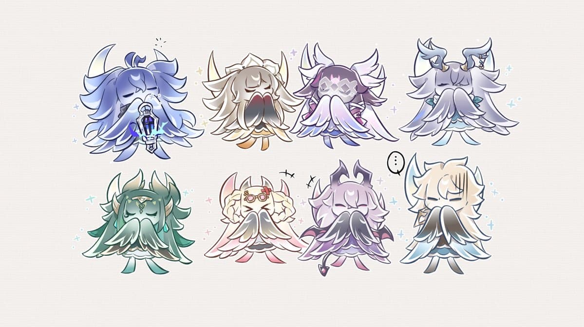 The visual direction stands out for its careful use of cool color palettes, layered shadows, and ornamental details that hint at ritualistic or spiritual significance. Rather than focusing on action, the illustration prioritizes presence and atmosphere. Each character’s pose and expression suggests individuality while still aligning with the shared identity of kuuhenkis, creating a cohesive yet varied ensemble.