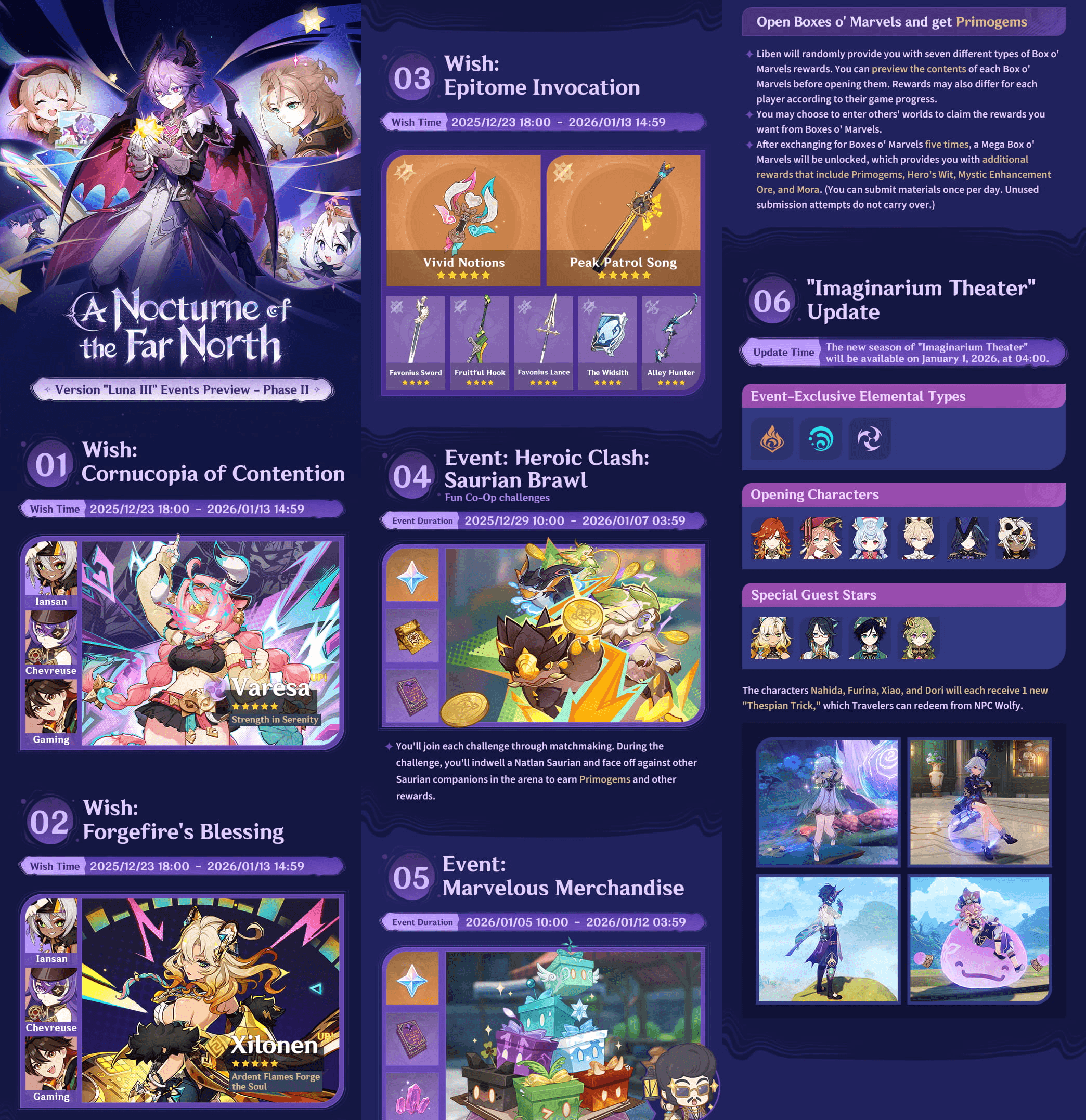 According to the official preview, Phase II events in Version Luna III will focus on a balanced mix of combat challenges, event-exclusive mechanics, and progression incentives. These activities are structured to support both casual players looking for Primogems and dedicated players seeking efficient resource farming. Each event is time-limited, reinforcing the importance of active participation throughout the second phase of the version cycle.