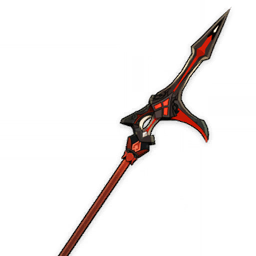 "A weapon made of blackcliff and aerosiderite. There is a dark crimson glow on its cold black sheen."
