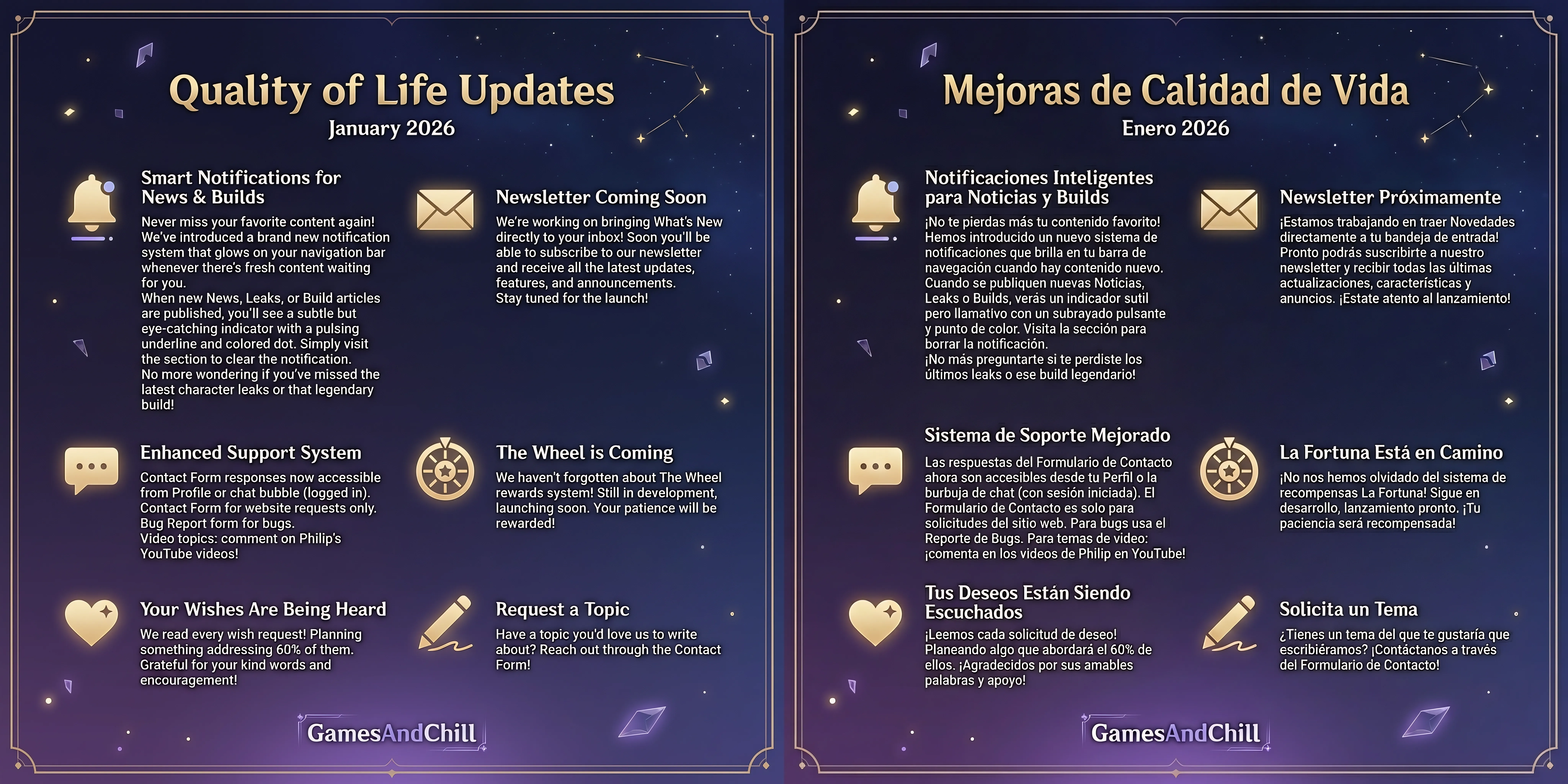 Stay up to date with the latest features, improvements, and tools we've added to enhance your Genshin Impact experience.